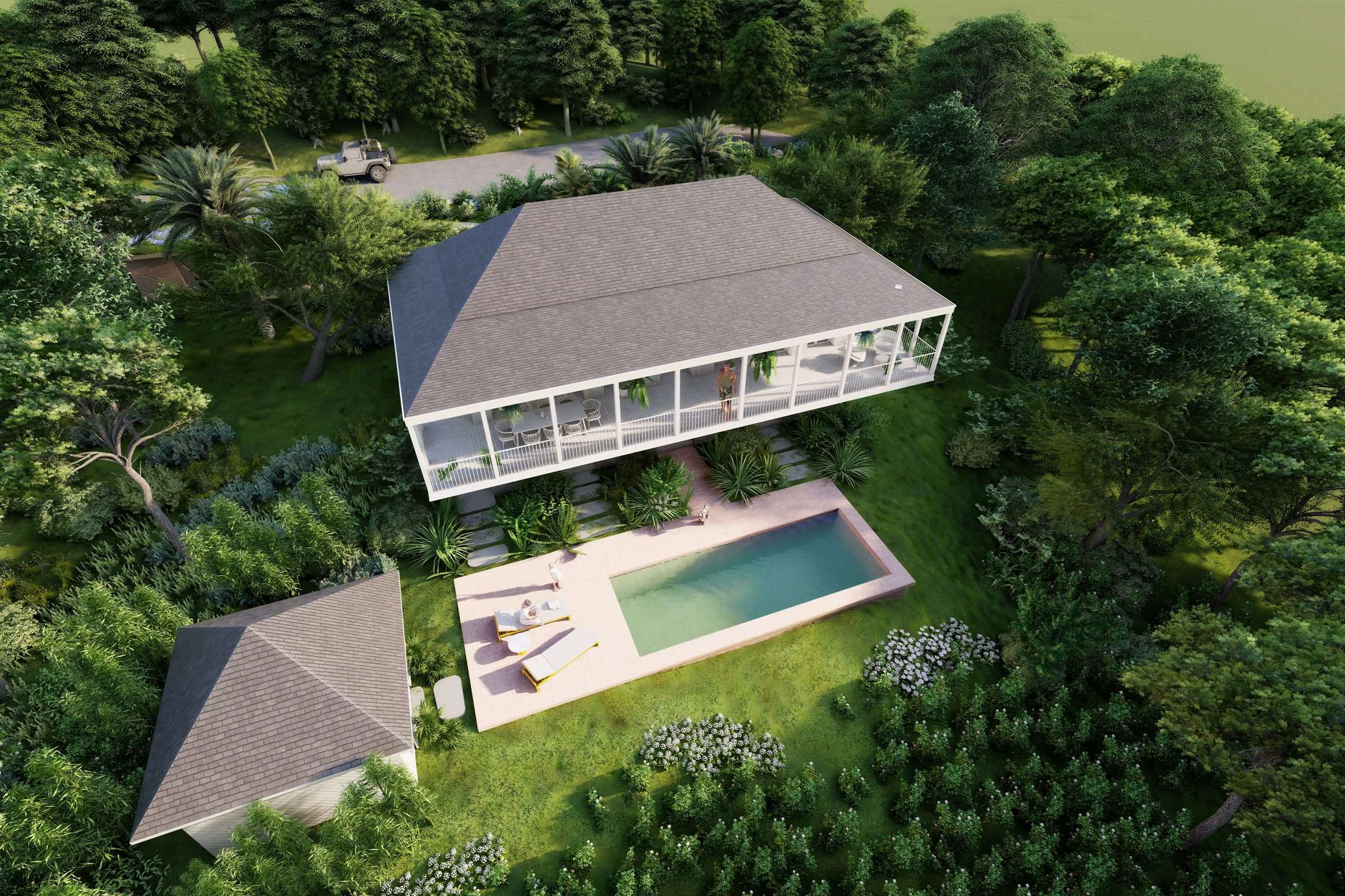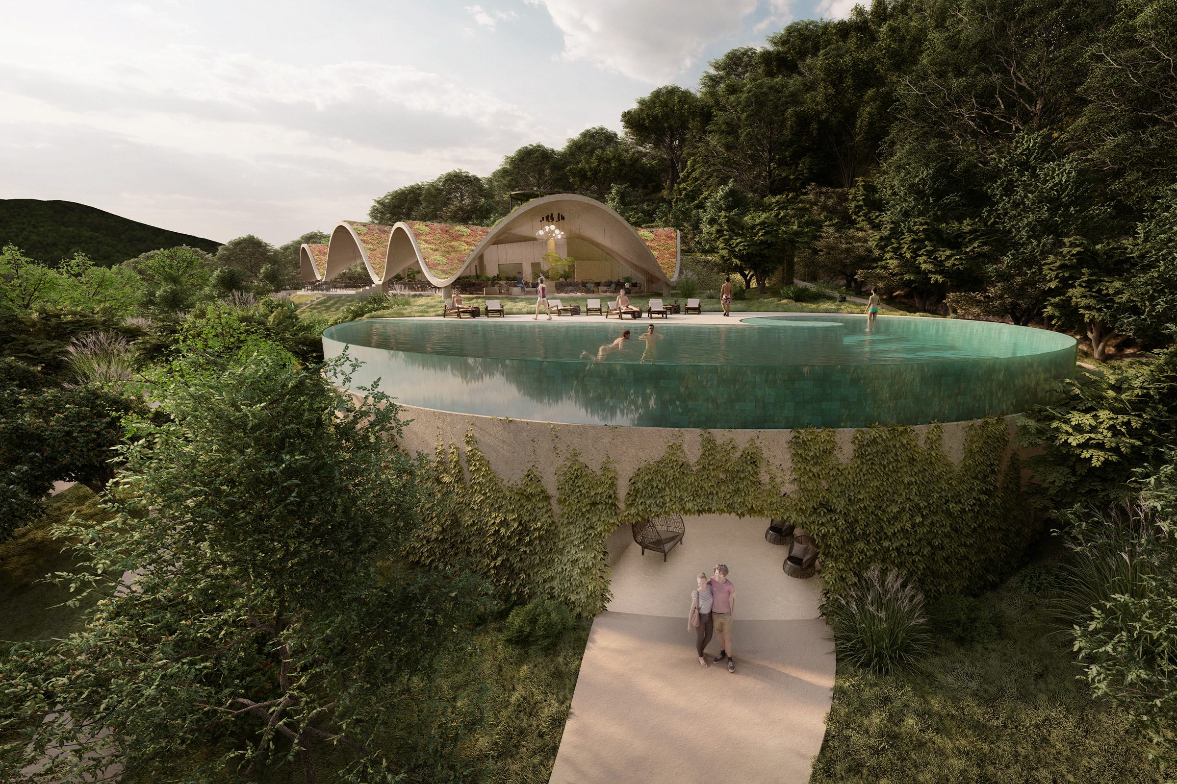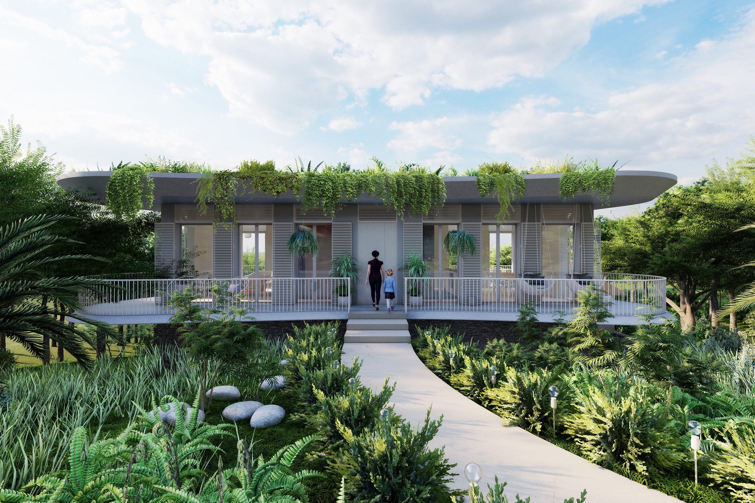 The two types of villas offer very different environments – Guetali Villas offer a more traditional experience with their shingle-covered gabled roofs, while Rivulet Villas with their green roofs allow owners to immerse themselves in their tropical surroundings.