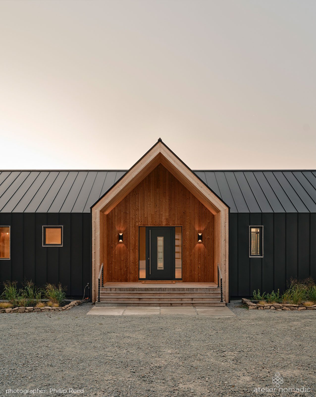 Built to rigorous passive house standards, the retreat integrates a 20kW solar array that produces more energy than the house consumes, Zehnder heat recovery ventilation system, Rheem heat pump water heating, and Unico high-velocity HVAC for optimized comfort. Structural insulated panels envelope the building, ensures year‑round thermal performance. The windows are executed in Quadruple insulation glazing (4-pane).