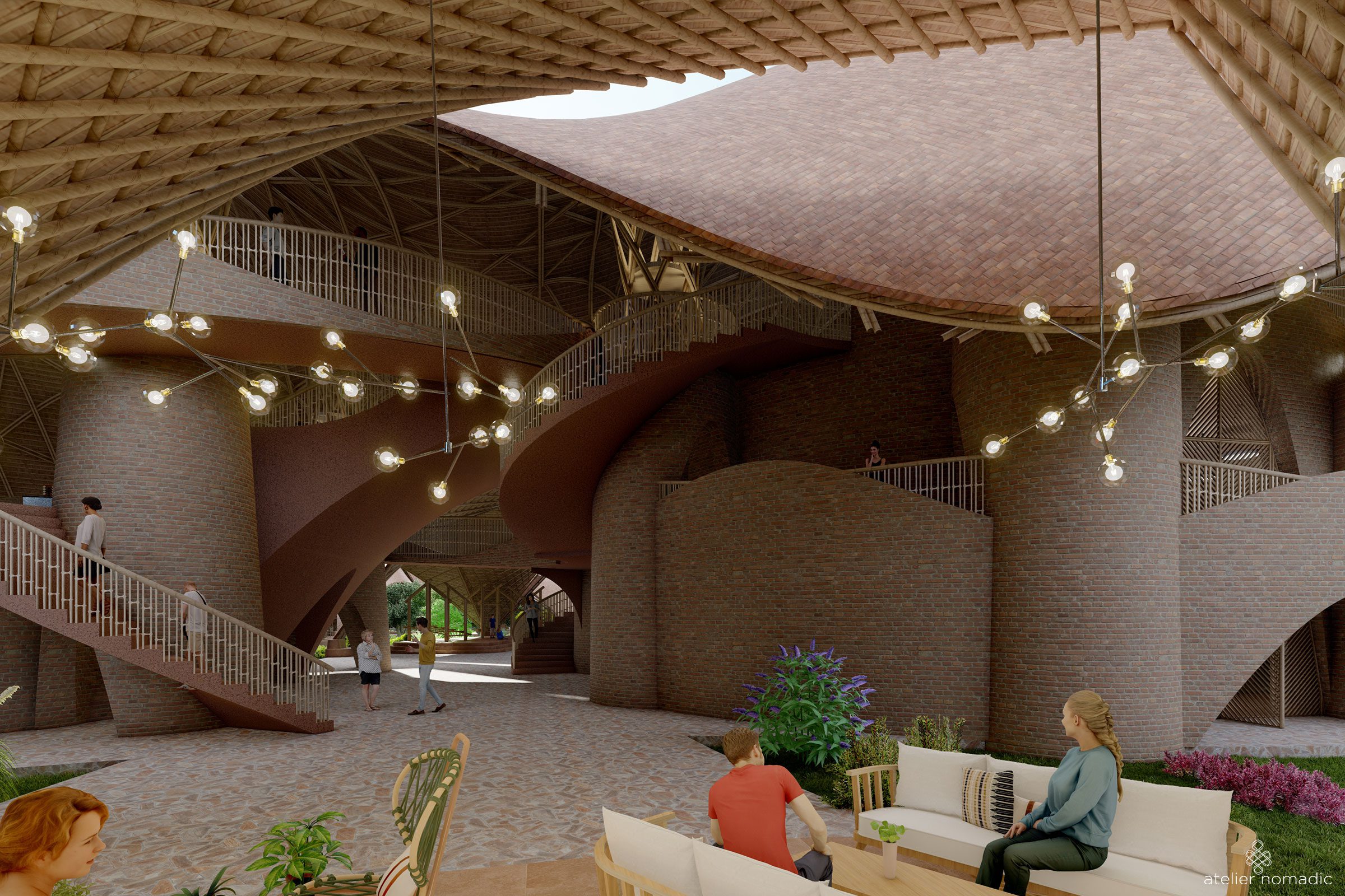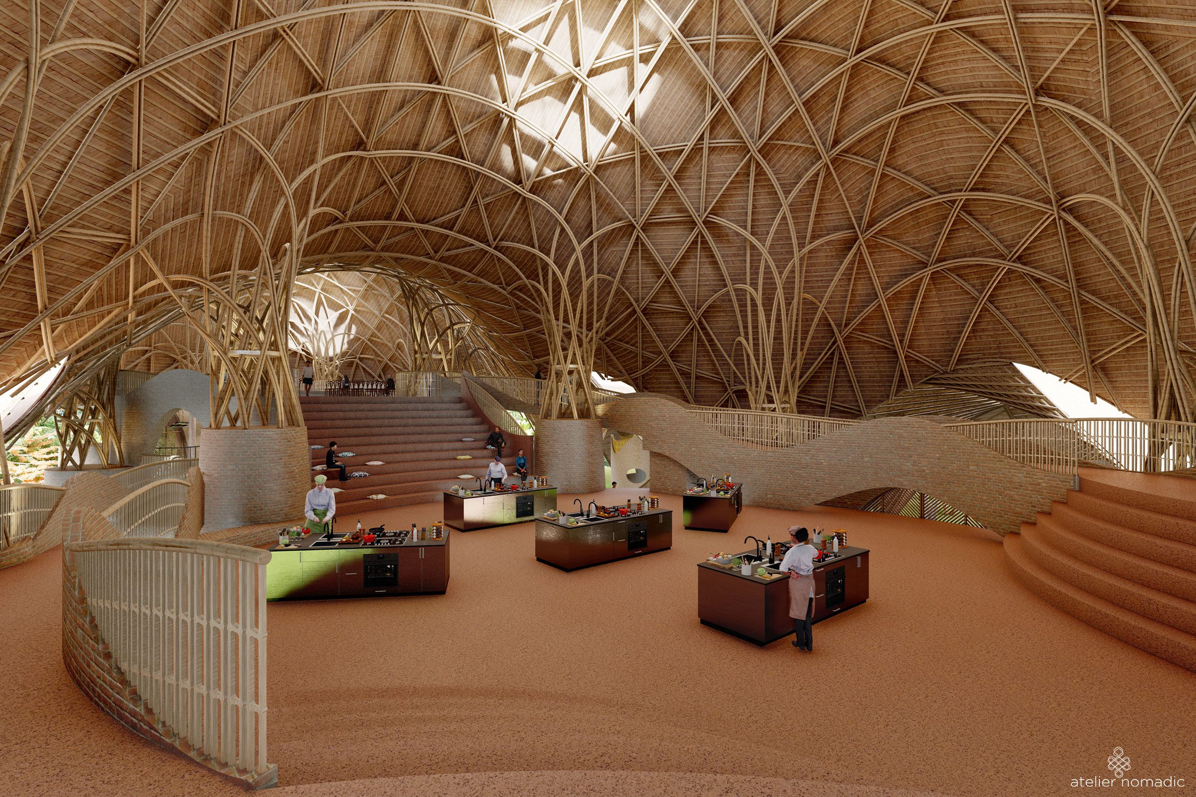 The school should be an iconic structure that will become an internationally recognized example of sustainable architecture that will promote bamboo as one of the most sustainable building materials in the world.