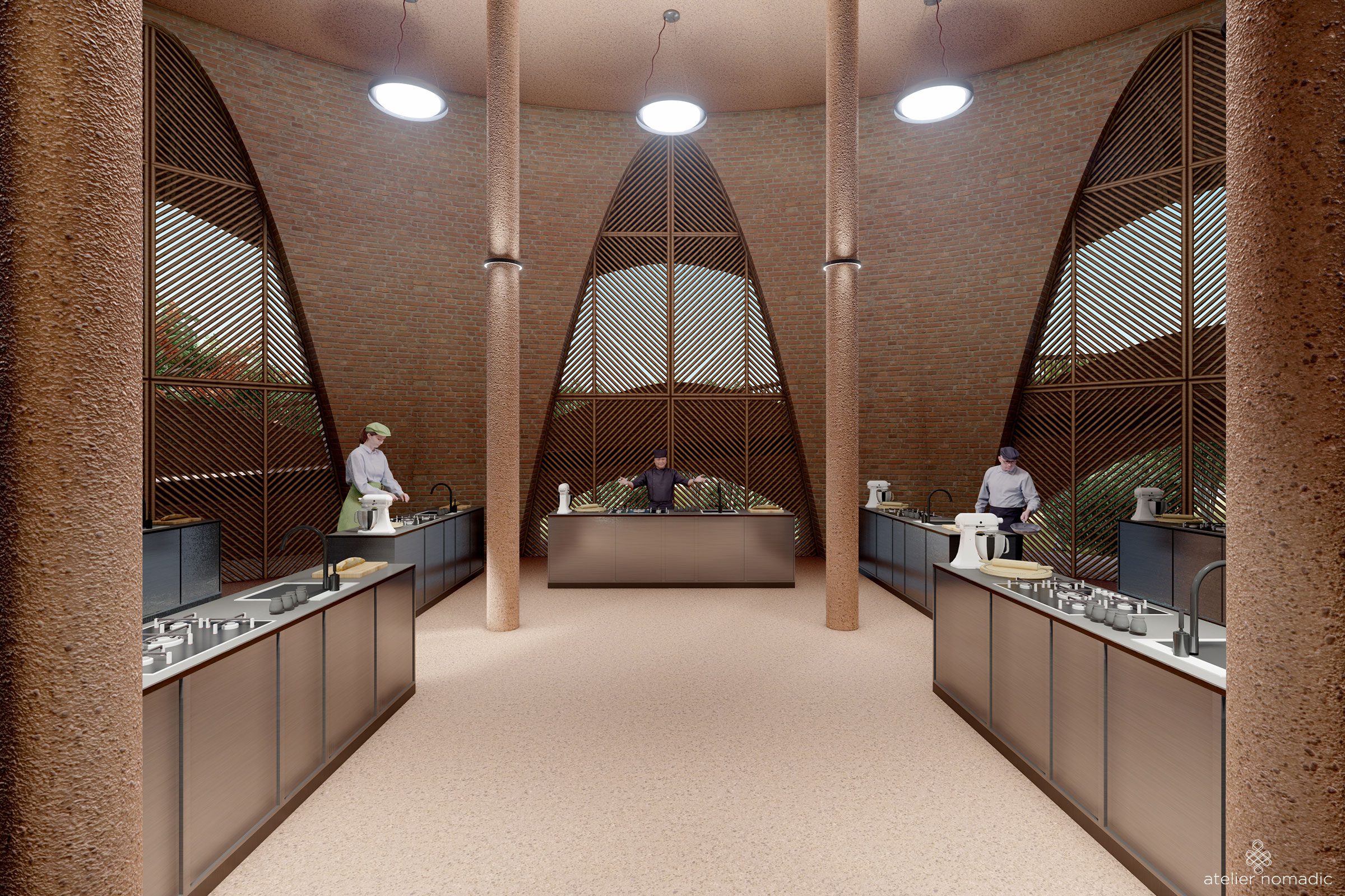 Built with 100% Bangladeshi Balcoa Bamboo, Jute and other local natural products, the Cooking School will actively promote sustainable construction as the longest and tallest bamboo structure in the world. Passive design strategies maximizing natural cross ventilation will reduce any need for air-conditioning throughout the property and maintain a comfortable indoor temperature.