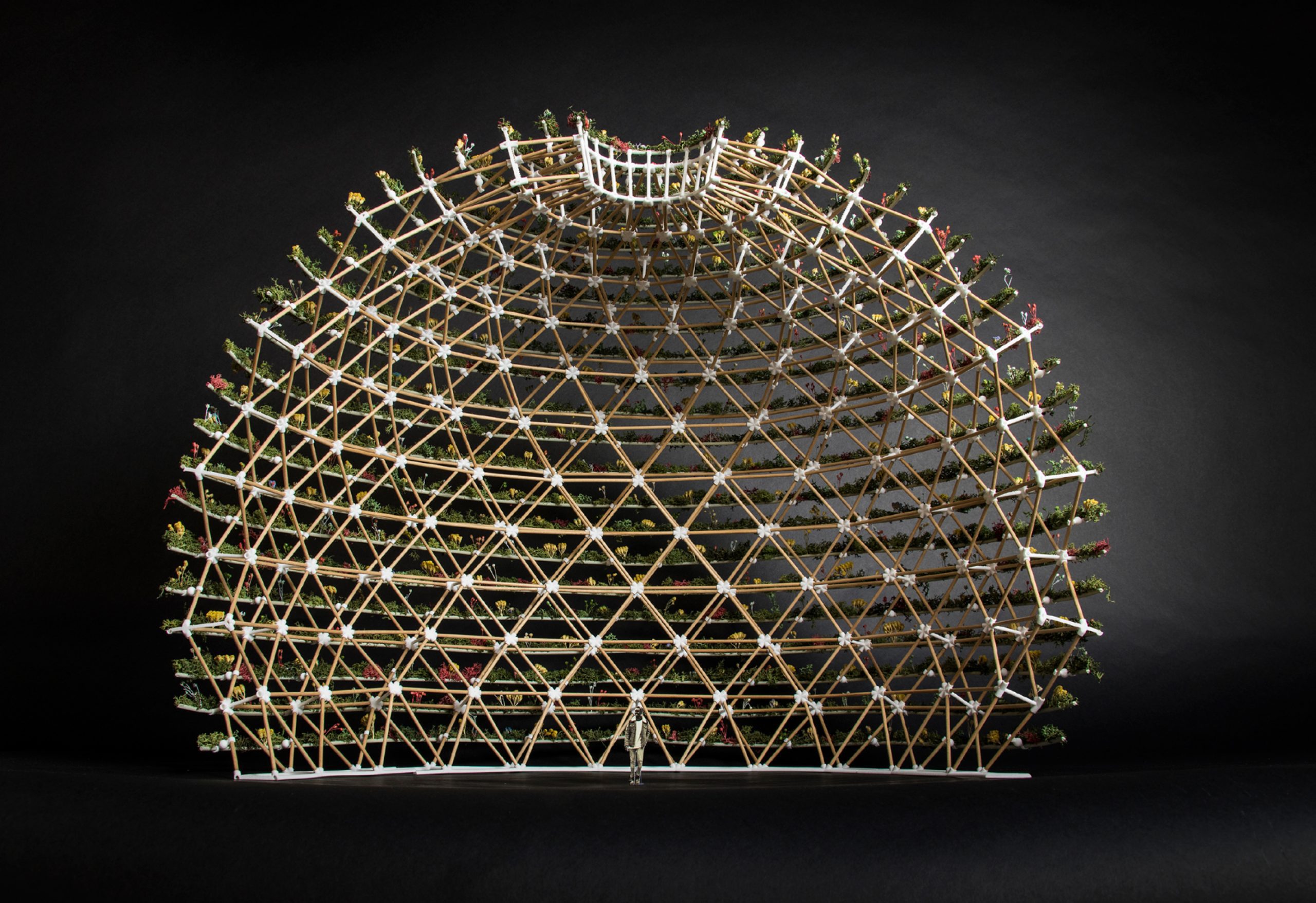 In collaboration with LOLA landscape architects and Summum Engineering, Atelier Nomadic designed the Dome of Plants in Cape Town, South Africa. The dome is a temporary structure meant to become a hotspot in a now largely stagnant and grey part of town. Dealing with the water crisis, the spekboom plants in the dome are to be watered with purified urine. The Dome of Plants was presented in Cape Town during Design Indaba 2018 in front of 4500 attendees.