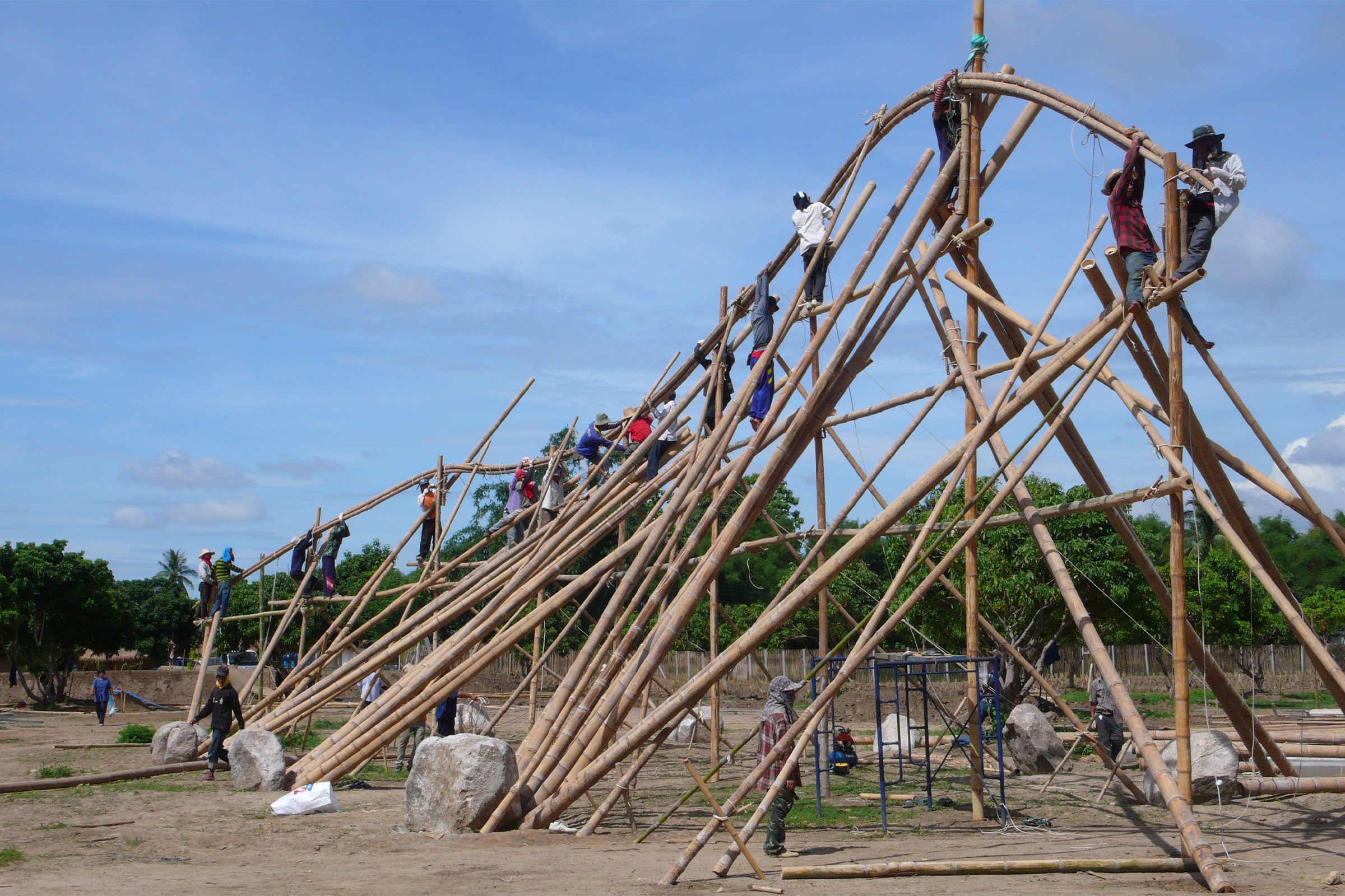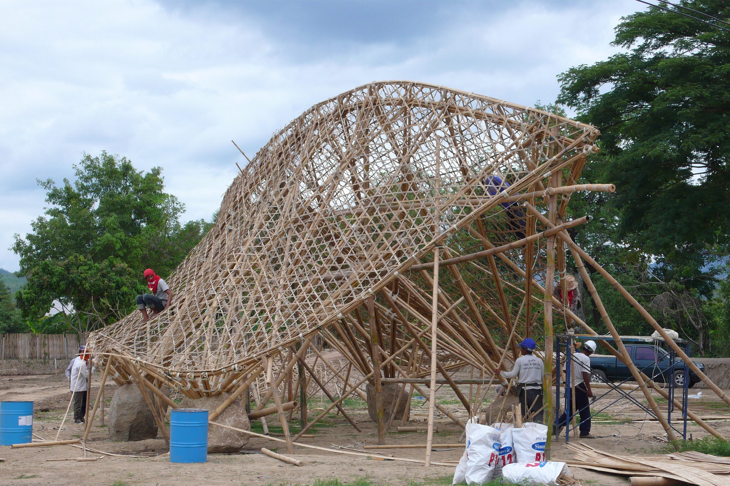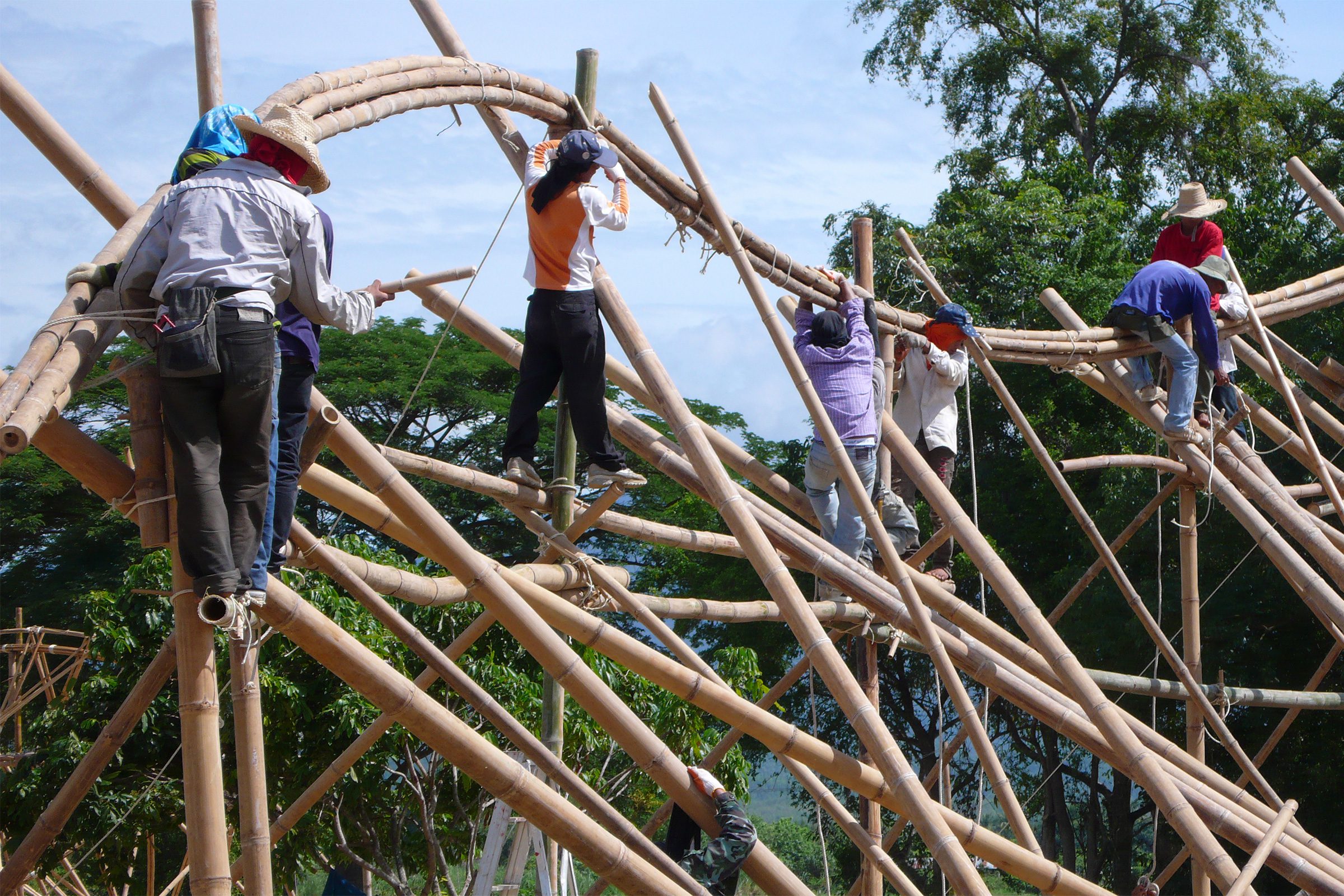 Olav helped training up the local construction team with the different bamboo techniques during the first month of construction of the project.