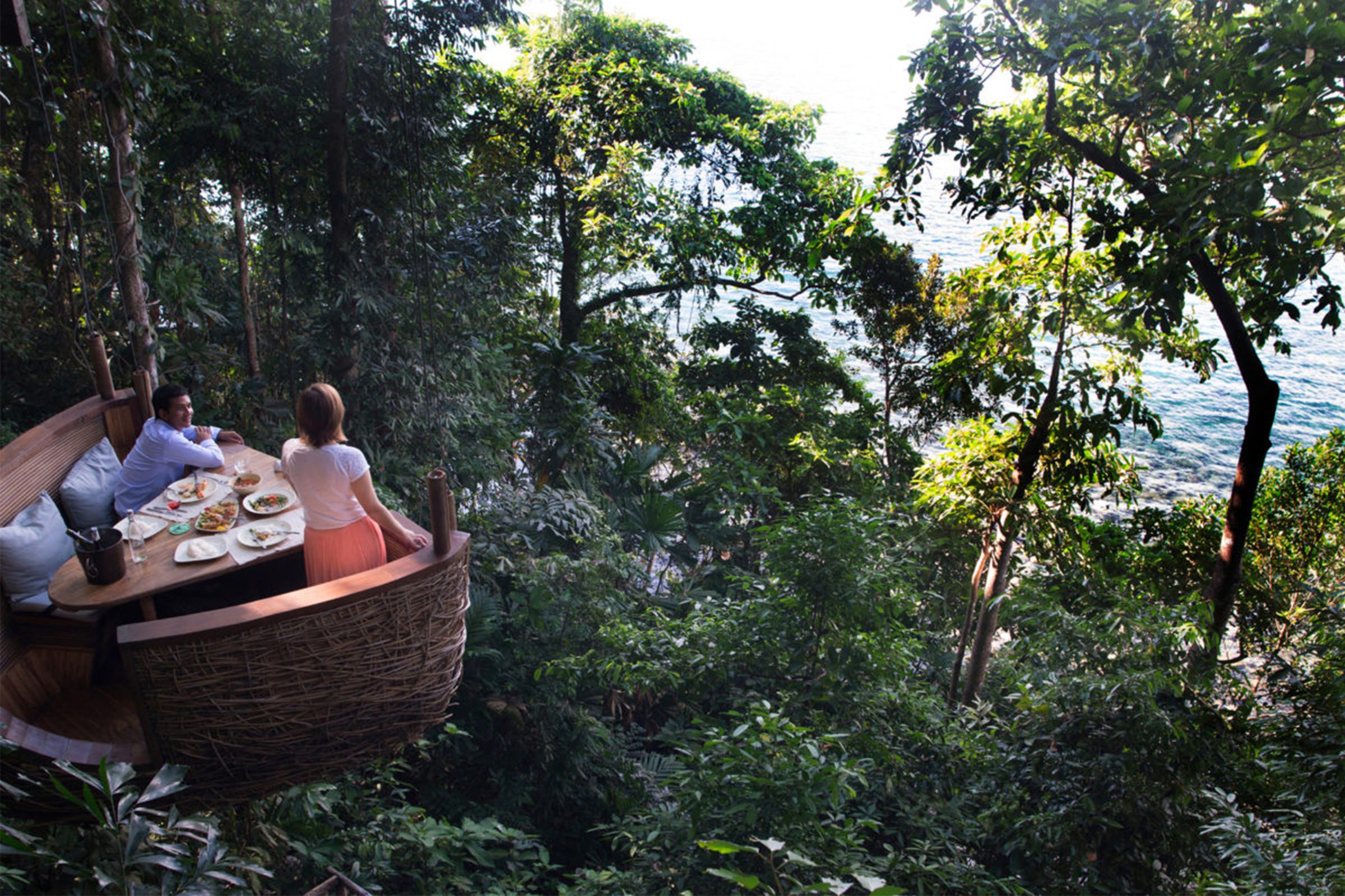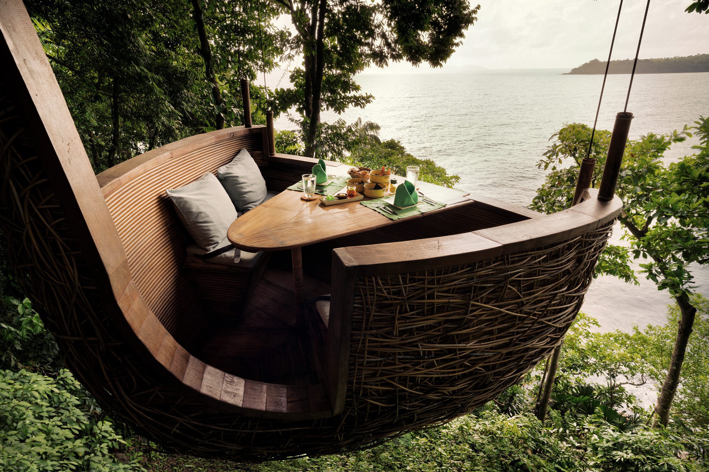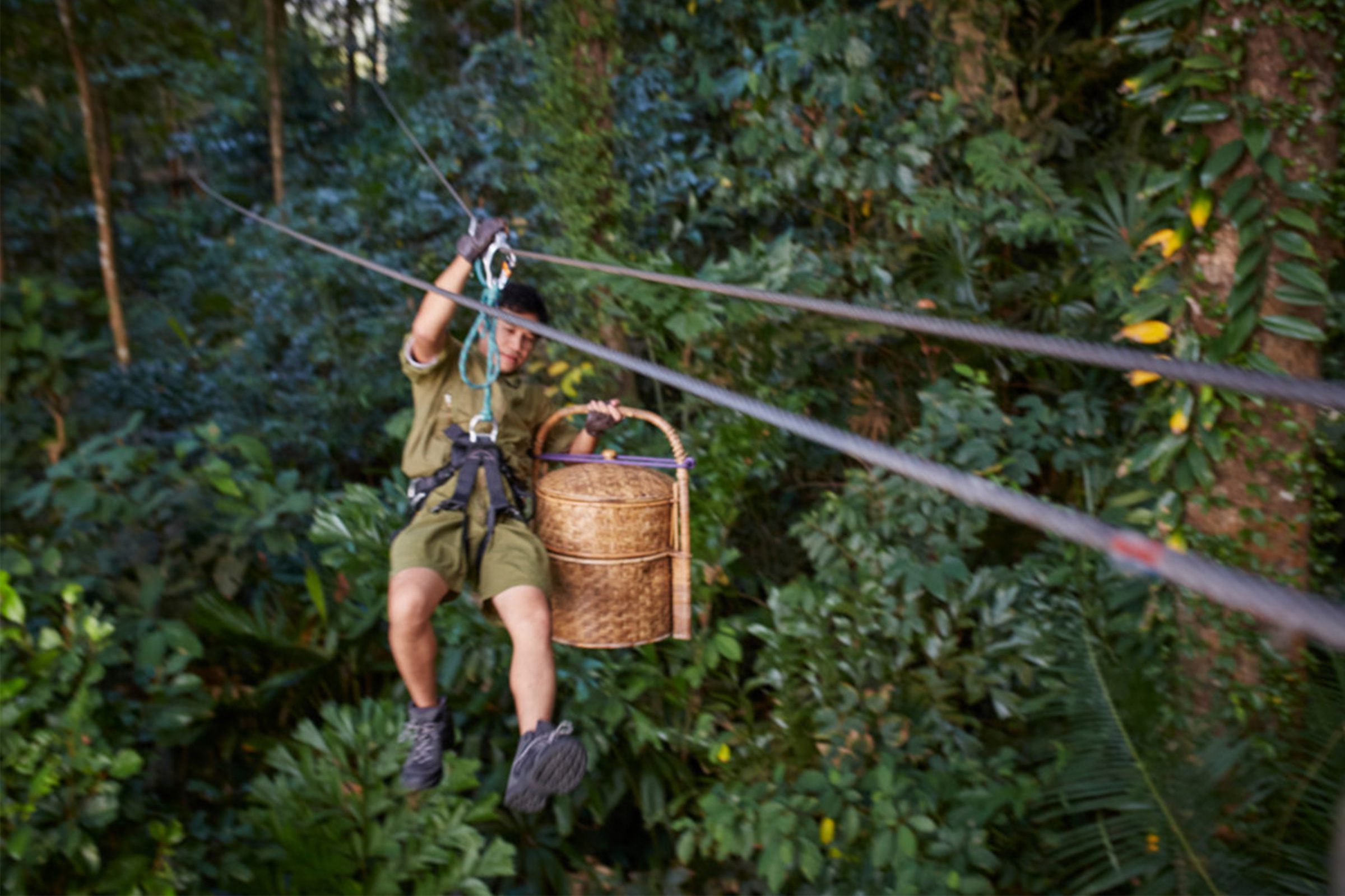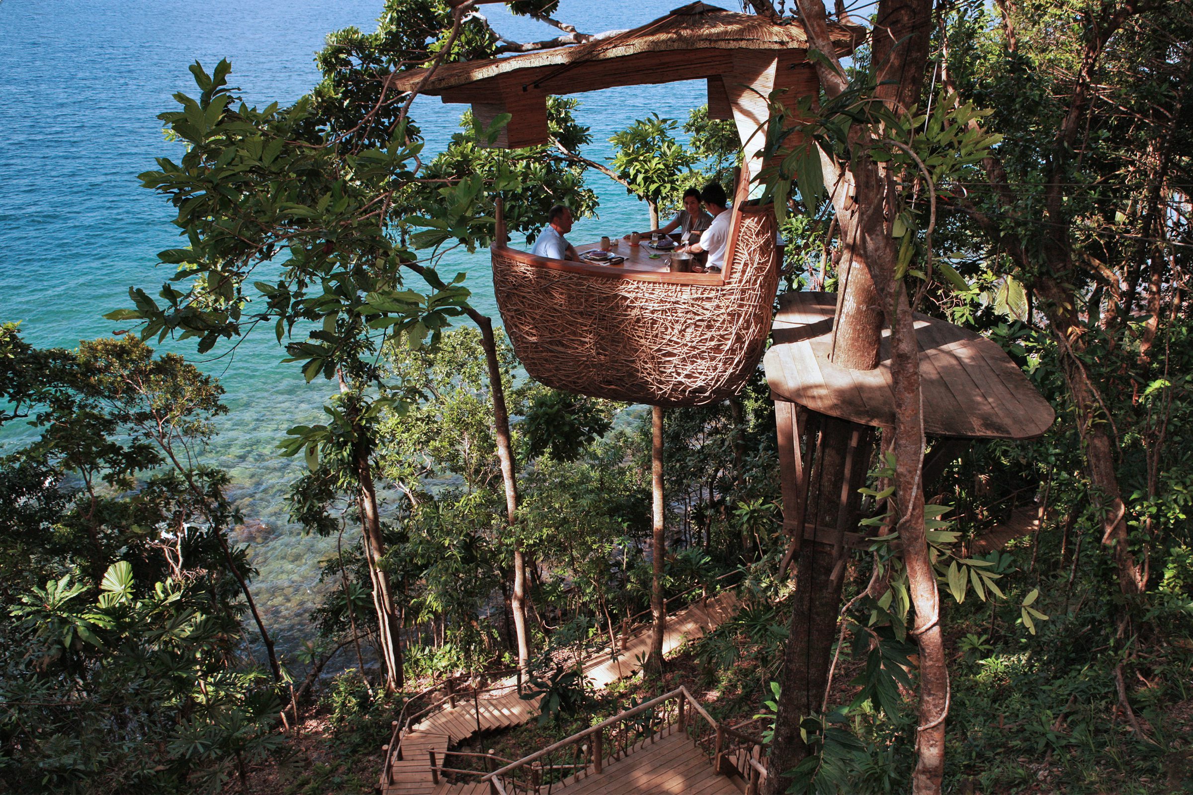 The Treepod Dining experience is taking fine dining to new heights, where the guests are comfortably seated in a bamboo pod and taken up 12 meter into the tropical foliage of Koh Kood’s ancient rainforest with a spectacular sunset-view across the Gulf of Thailand. Delights and wines are delivered via the zip-line acrobatics of a personal waiter. The design was created by Dutch firm 24H-architecture where Olav Bruin was involved as project architect and construction supervisor.