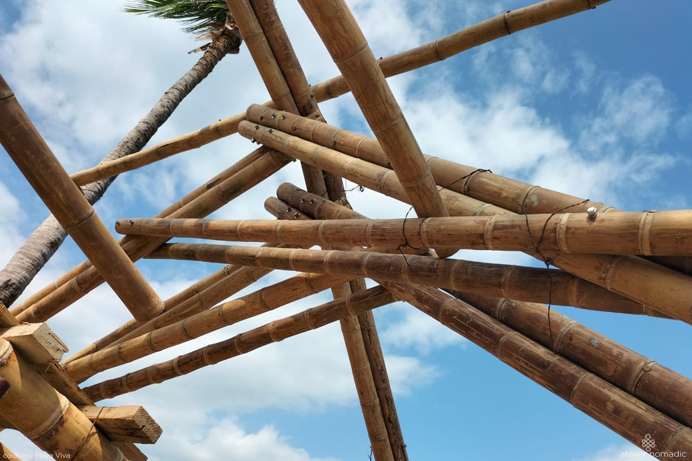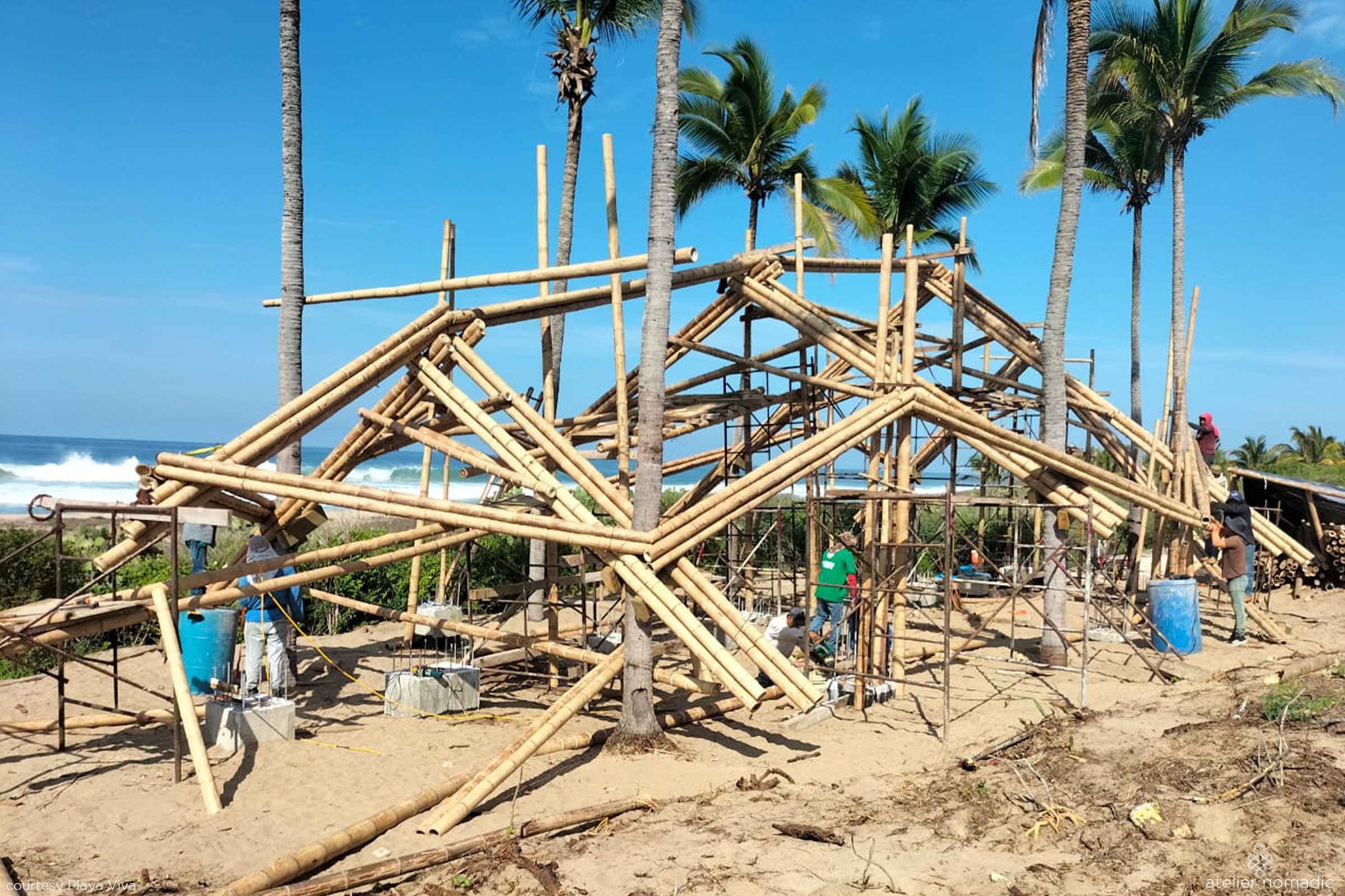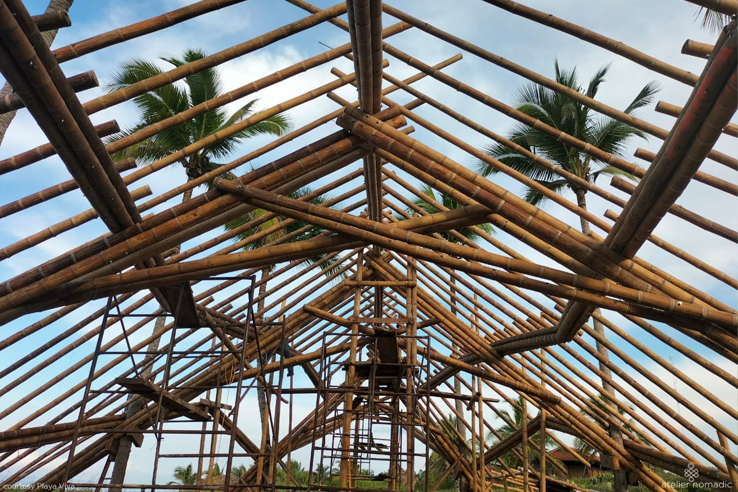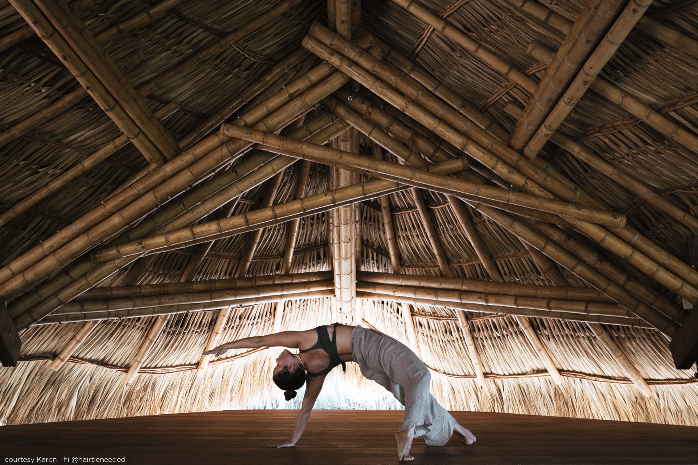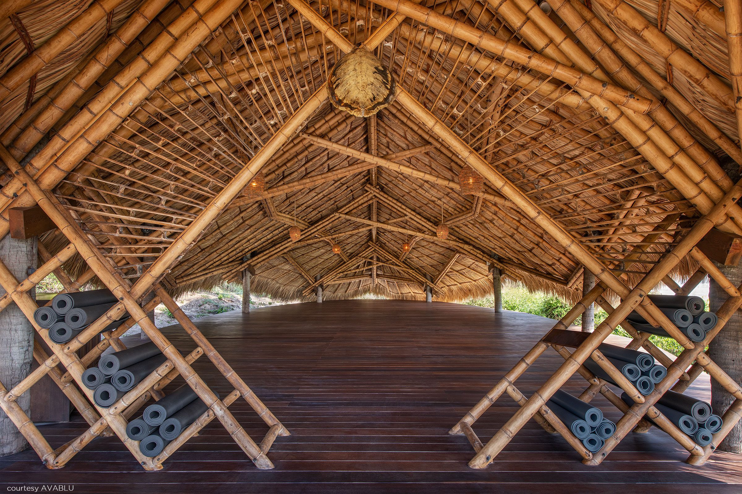 The space has been designed around the human body and the expressive bamboo structure seeks a dialog with the different yoga positions of the people it shelters.